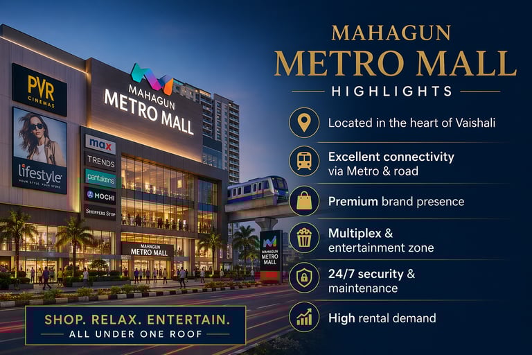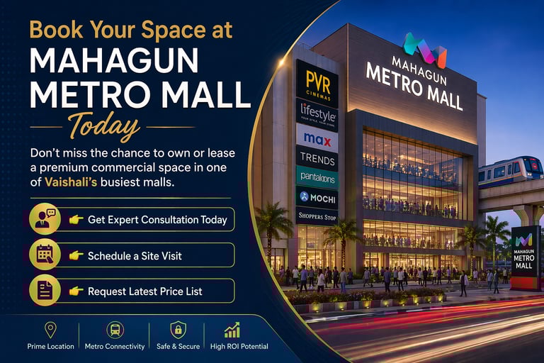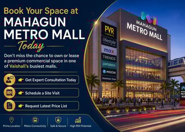 Own your space at Mahagun Metro Mall—where business meets lifestyle. Mahagun Metro Mall – Premium Shops, Investment Opportunities & Retail Spaces in Vaishali