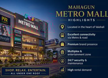 Whether you're looking to buy a retail shop, lease a commercial unit, or invest for rental income, Mahagun Metro Mall provides unmatched visibility and long-term growth potential.